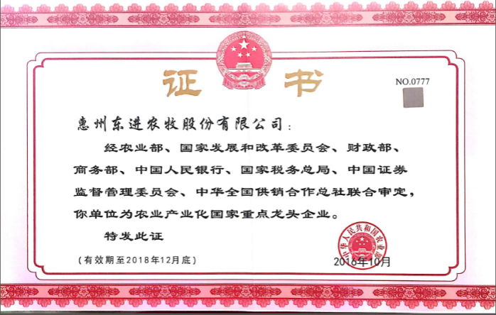 - 被國家農(nóng)業(yè)等八部委評(píng)委國家級(jí)農(nóng)業(yè)龍頭企業(yè)(編號(hào):NO.0501)